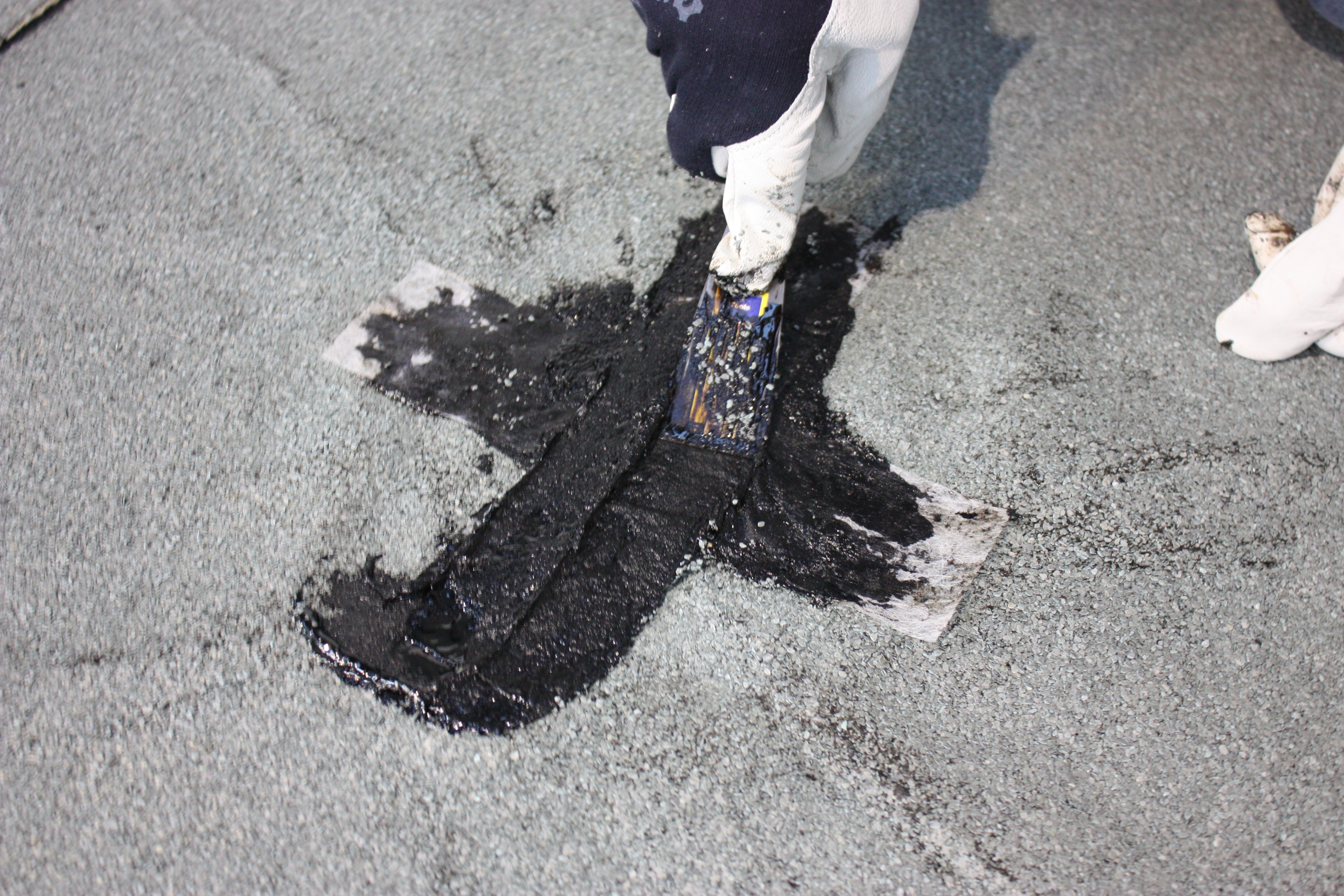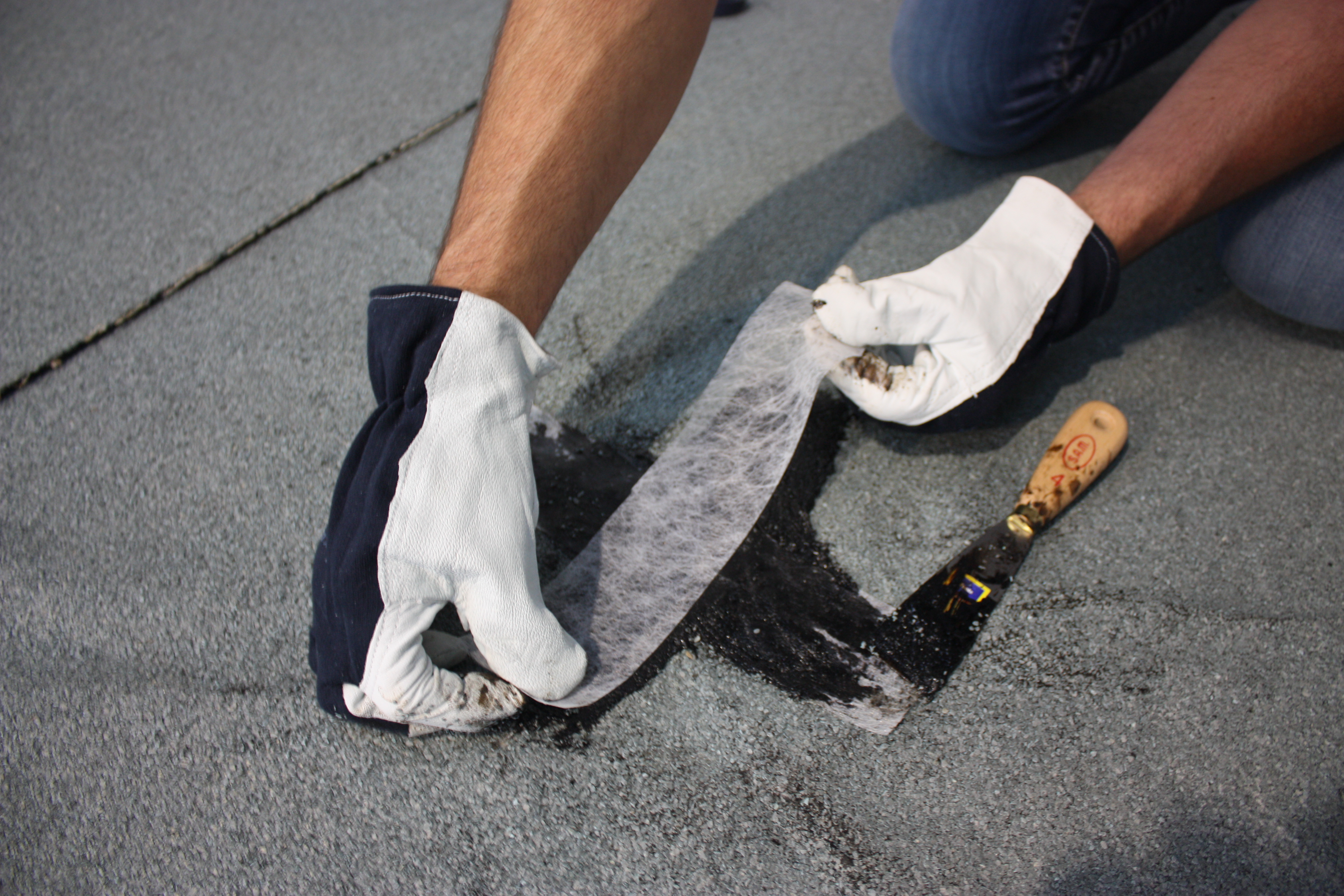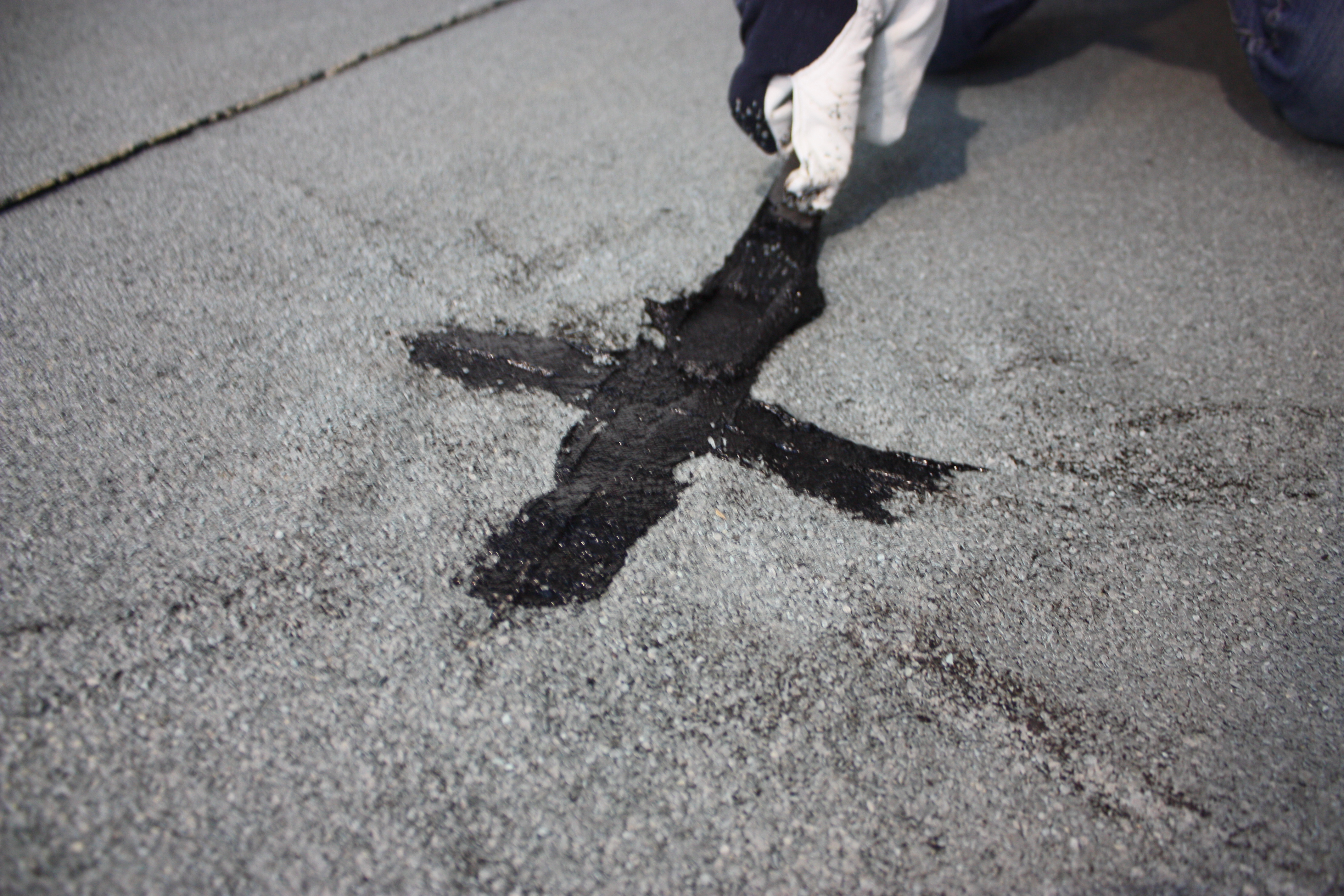 - 1 Schicht DACHREPARATUR mit einem Spachtel auf die Schnittlinien auftragen.