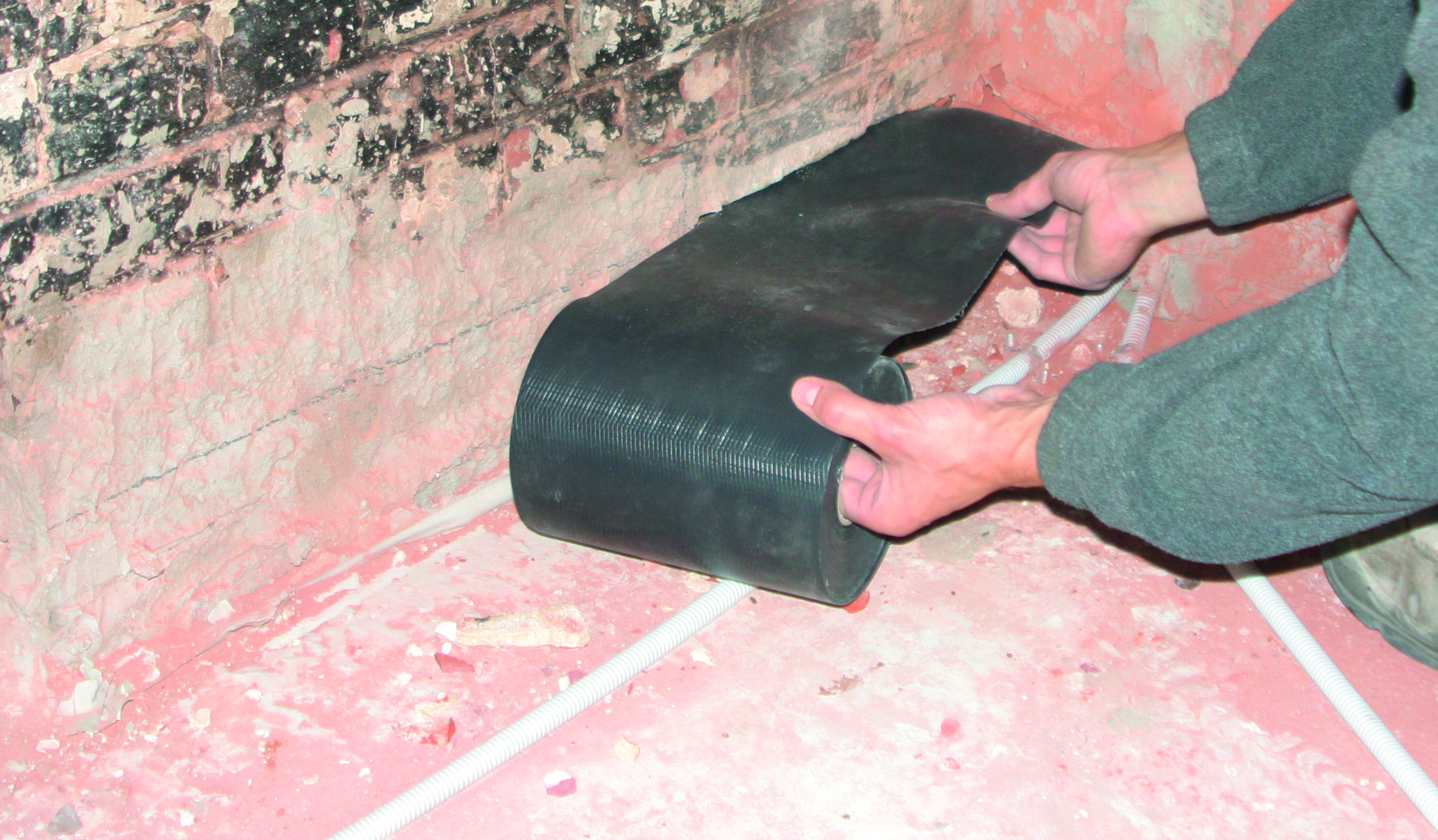Wasserdichtes Kunststoffband auf Rolle gegen aufsteigende Feuchtigkeit.
