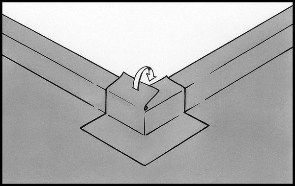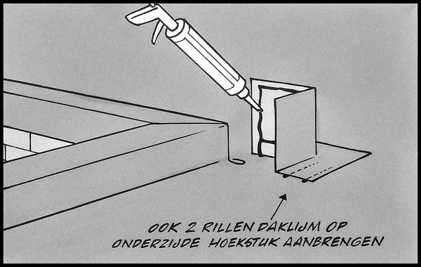 - Bringen Sie das Eckstück an und drücken Sie es mit einer Rolle fest. Bei korrekter Verklebung sollte immer eine kleine Menge Kleber unter dem Eckstück herauskommen, die vorsichtig entfernt werden kann.