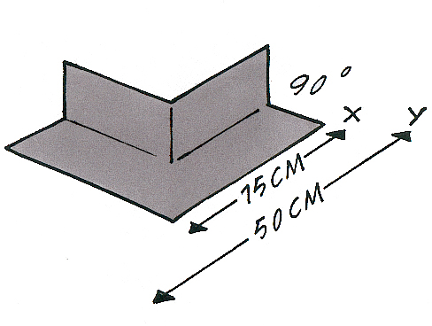 - Kleben Sie anschließend das vorgeformte Außeneckstück mit DACHKLEBER EPDM. Tragen Sie an der Rückseite des Eckstücks sowohl auf dem vertikalen als auch auf dem horizontalen Teil durchgehende Klebestreifen gemäß dem abgebildeten Schema auf. Achten Sie darauf, dass der äußere Klebestreifen immer etwa 2 cm vom Rand entfernt aufgetragen wird.