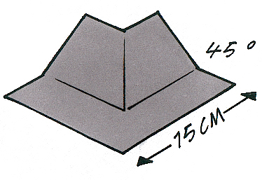 - Schneiden Sie dann die GUMMI-DACH-Folie unter einem Winkel von ca. 45° bis zur Dachoberfläche und schneiden Sie am Ende etwas zurück, sodass ein kleiner Kreis entsteht. Dies verhindert eventuelles Einreißen bei der manchmal zu heftigen Handhabung der GUMMI-DACH-Folie während der Verlegung.
