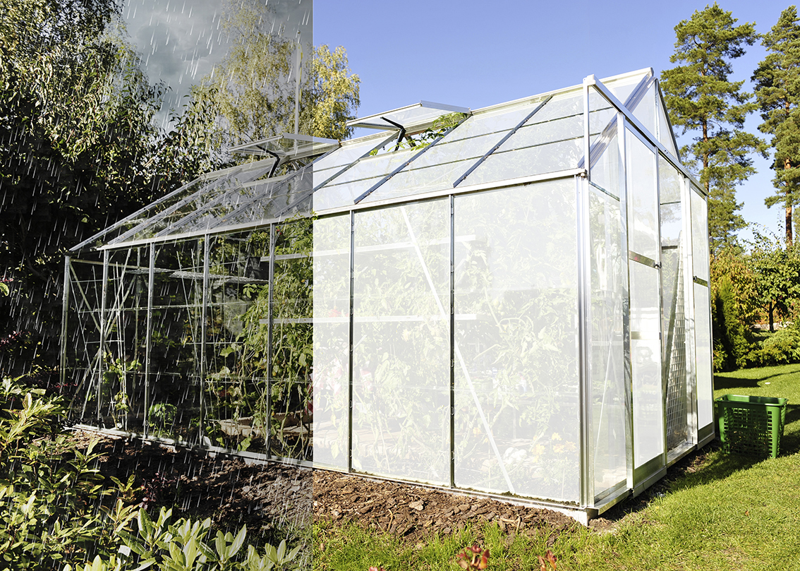 Eine Sonnenschutzfarbe, die Hitzestörungen im Wintergarten verhindert. Die Farbe wird bei Regen transparent und trocknet bei trockenem Wetter weiß auf. Die Farbe auf Wasserbasis enthält auch keine schädlichen Substanzen, die das Wasser in Teichen oder Kanälen verunreinigen könnten.