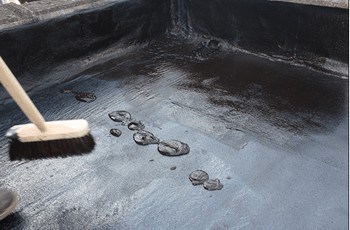 Enduisez ensuite la totalité de la surface de la toiture avec une brosse ou une raclette. La couleur brune initiale noircit complètement pendant le séchage. Laissez la 1ère couche sécher complètement. Ceci dure entre 24 et 36 heures. Veillez à ce que la toiture reste sèche pendant 4 heures après l’application.