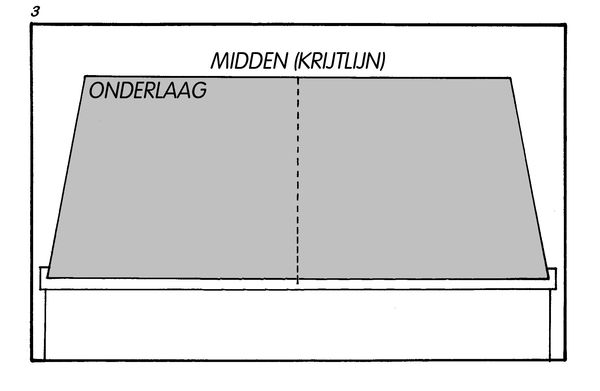 - Placez les ardoises initiales en vissant les 2 premières ardoises initiales à gauche et à droite de la ligne de craie. Utilisez le marquage « clou » prévu. Prévoyez en bas un dépassement de max. 3 à 4 cm. Placez les ardoises initiales suivantes les unes à côté des autres de manière à ce que le bord d'une ardoise touche la face latérale de l'autre ardoise.