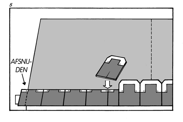 - Utilisez pour la finition du faîte l'Ardoise-Rustique Faîtière. Préparez les faîtes en découpant la partie non visible en oblique avec un cutter ou une scie sauteuse. Commencez toujours face au vent dominant.