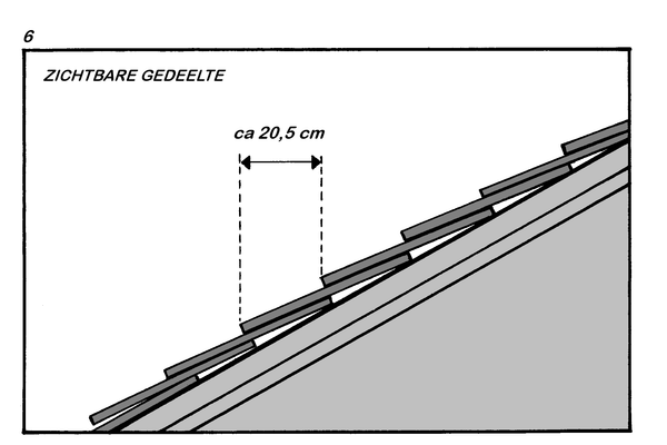- Déterminez la partie visible en fonction du degré de pente de votre toiture. Recherchez ici la ligne de marquage correspondante et gardez-la de manière conséquente lors de la pose des ardoises.