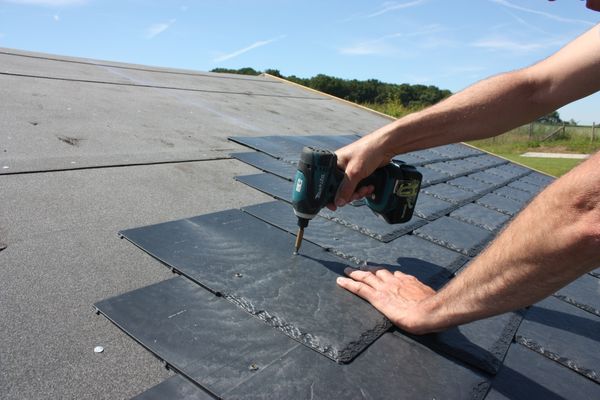 - Déterminez le centre de la longueur de la toiture et placez une ligne de craie verticale de bas en haut comme point de départ pour chaque nouvelle rangée d'ardoises.