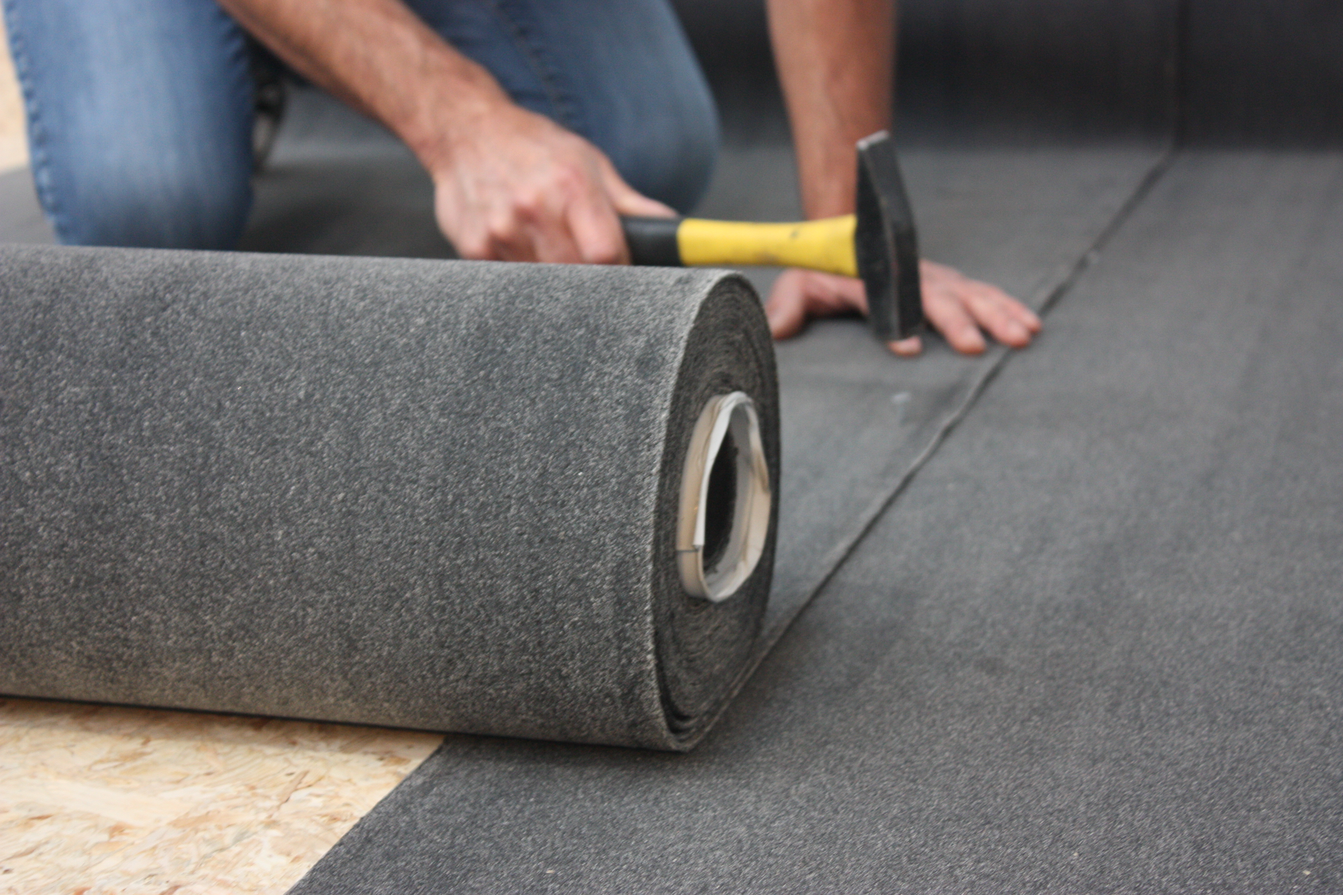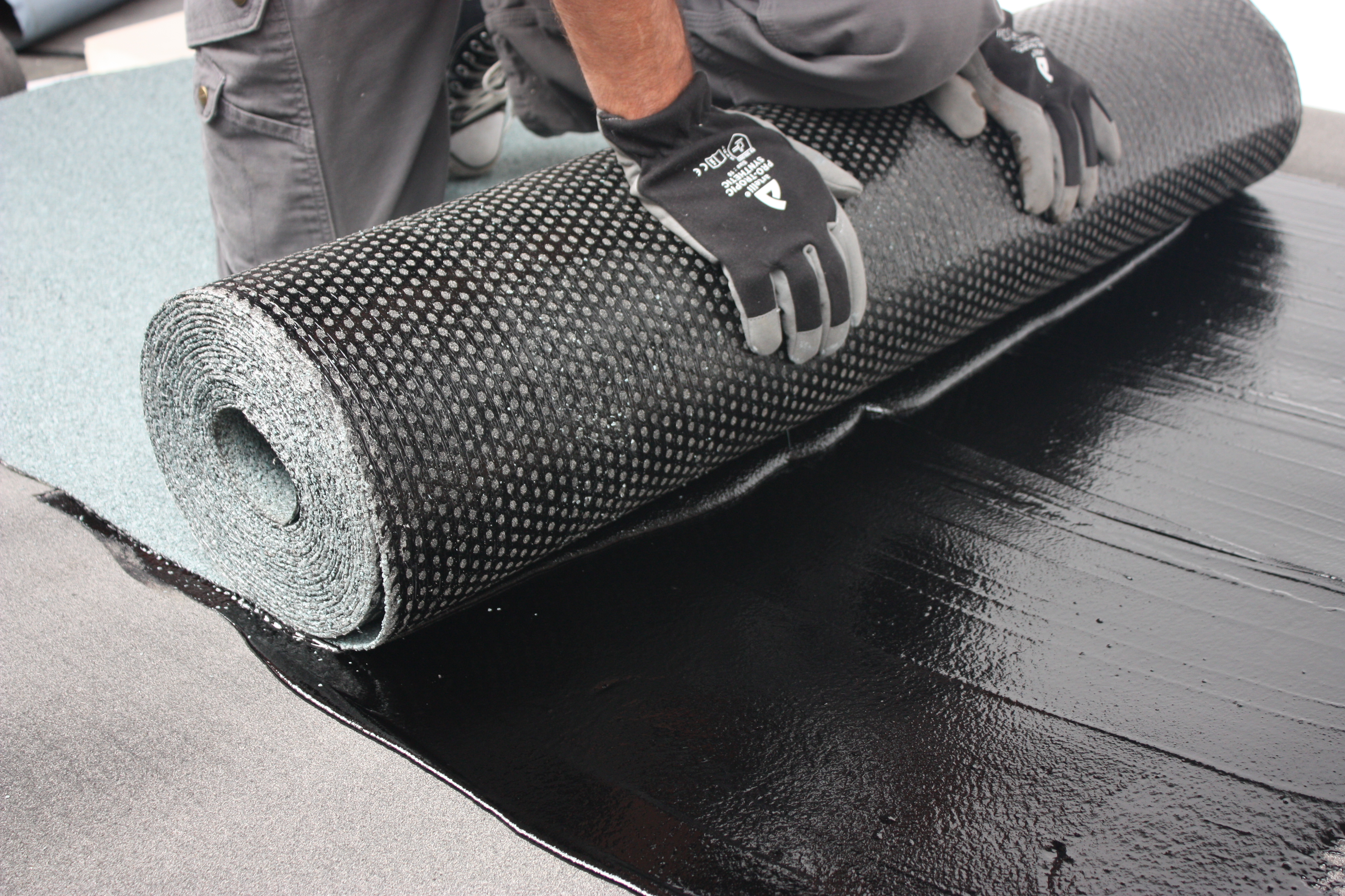 - Si vous n'avez pas de structure de toit en bois, vous pouvez coller le rouleau. Appliquez une couche de DAK-LIJM sur le support à l'aide d'une raclette ou d'un pinceau. Placez le rouleau dans la colle et déroulez-le. Veillez à ce que la colle soit bien répartie sur toute la largeur du rouleau. Si nécessaire, versez un peu plus de colle.