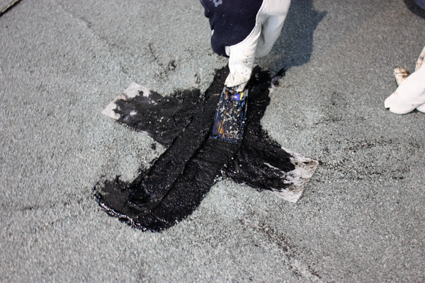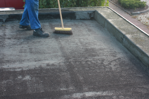 - Herstel blazen, barsten en scheuren met Dak-Reparatie of met de elastische Dak-Mastic SBS, eventueel verstevigd met de scheurvaste polyester mat Anti-Scheur. Laat deze reparatie voldoende uitdrogen (ca. 1 week) alvorens verder te gaan.