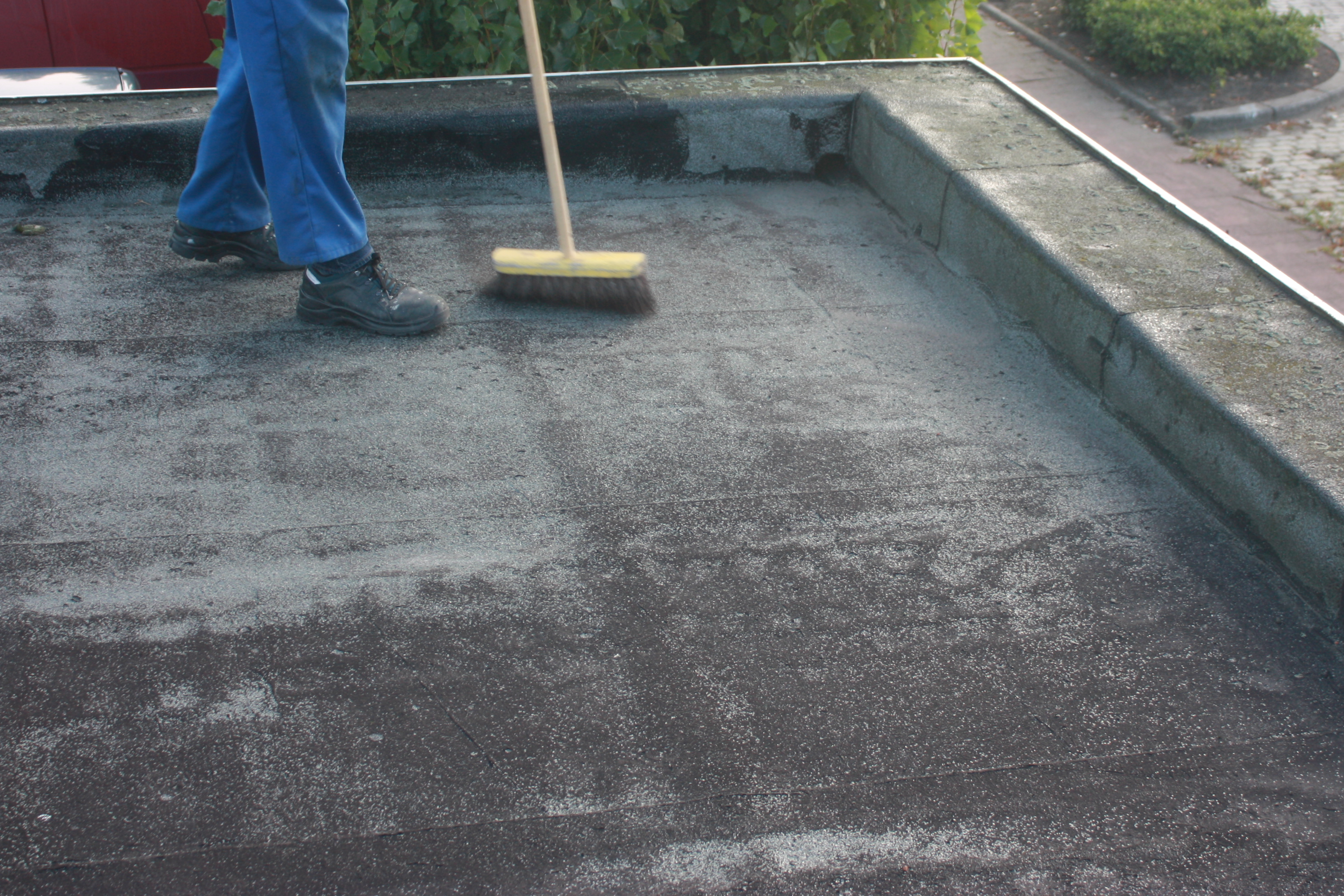 - Herstel blazen, barsten en scheuren met Dak-Reparatie of met de elastische Dak-Mastic SBS, eventueel verstevigd met de scheurvaste polyester mat Anti-Scheur. Laat deze reparatie voldoende uitdrogen (ca. 1 week) alvorens verder te gaan.