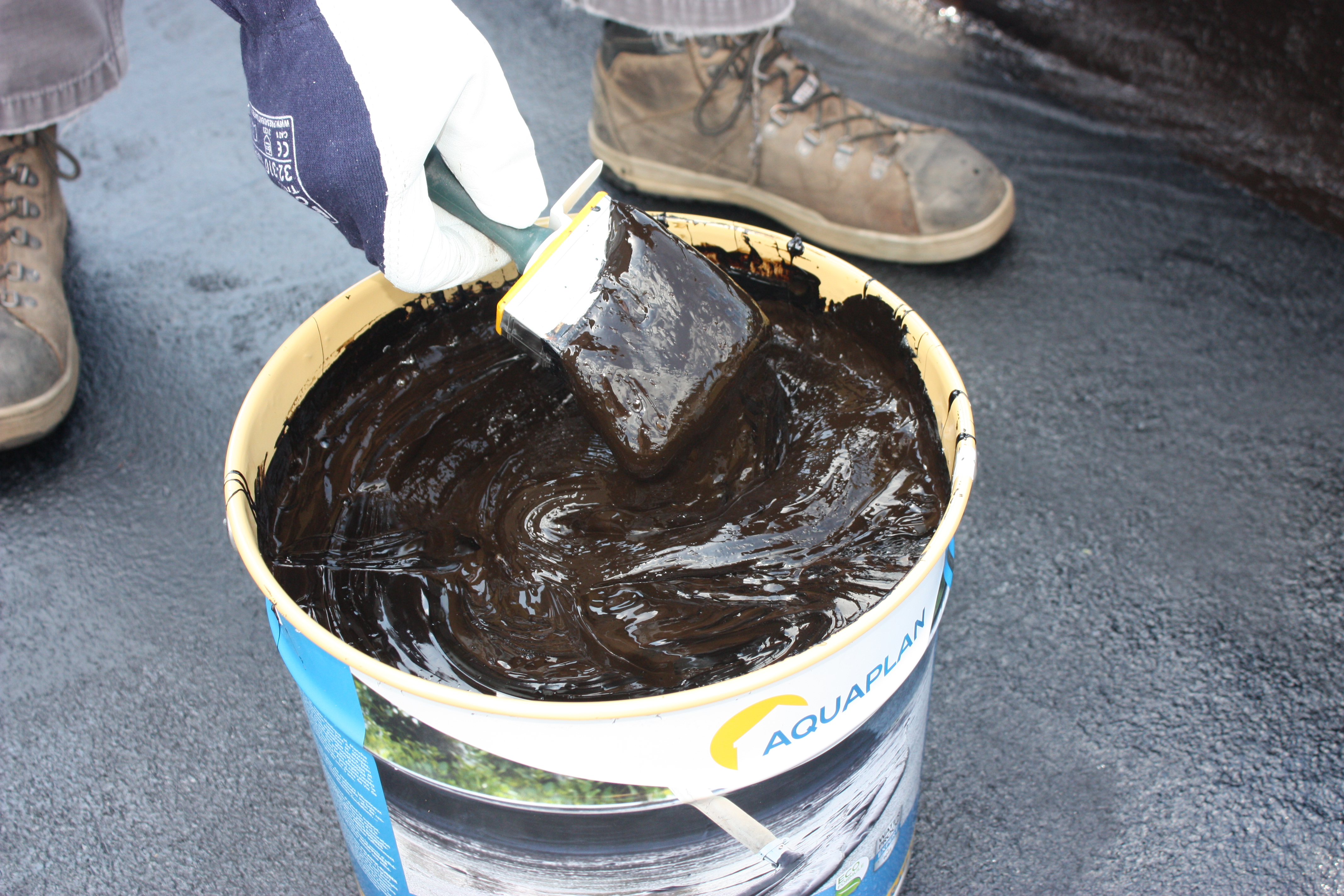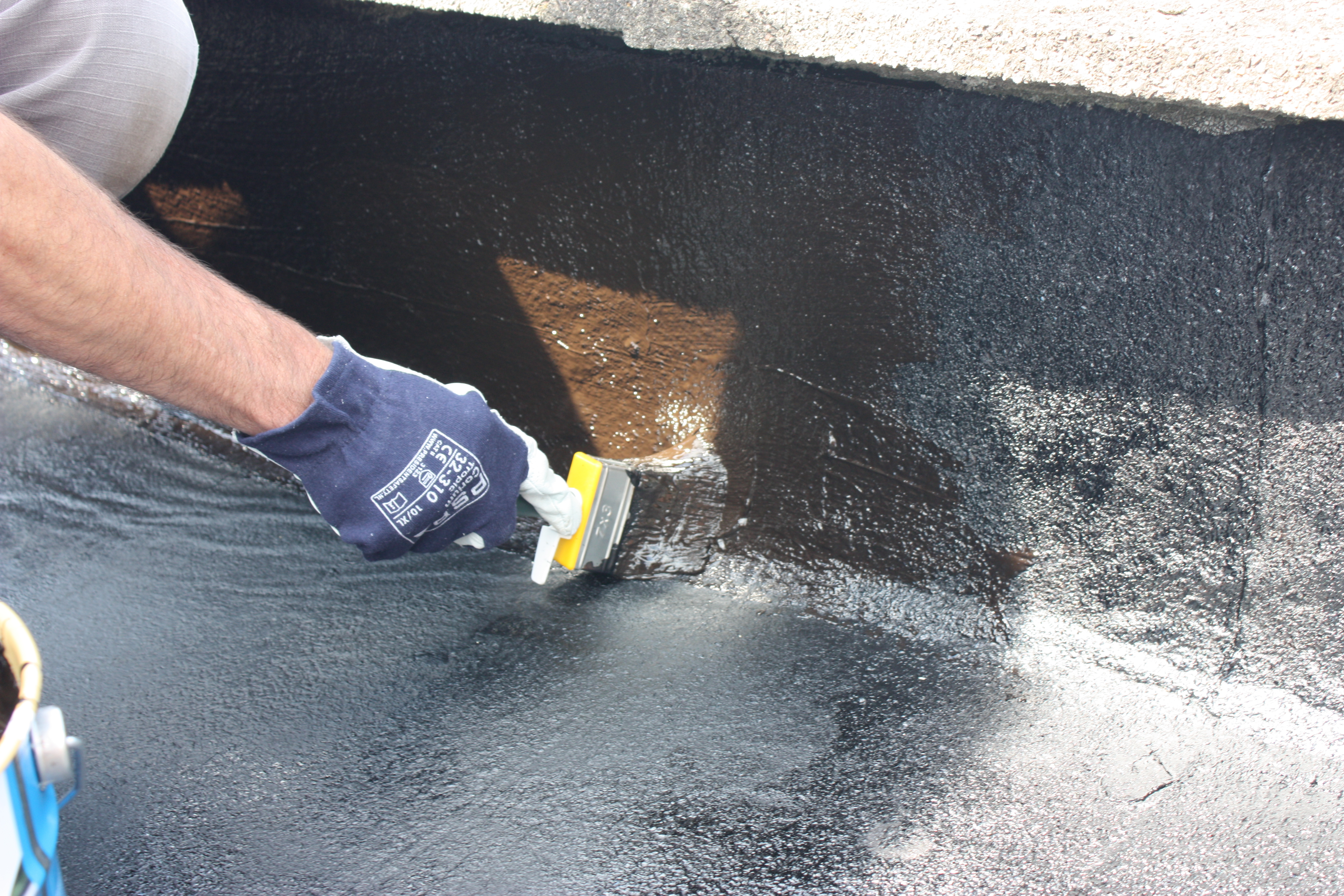 - Breng 2 gekruiste lagen Elastic-Rubber aan met borstel of vloerwisser, à rato van ca. 1 kg/m²/laag en zorg dat elke laag min. 4 u beschermd is tegen regen, vorst en nevel. De aanvankelijk bruine kleur wordt volledig zwart.
