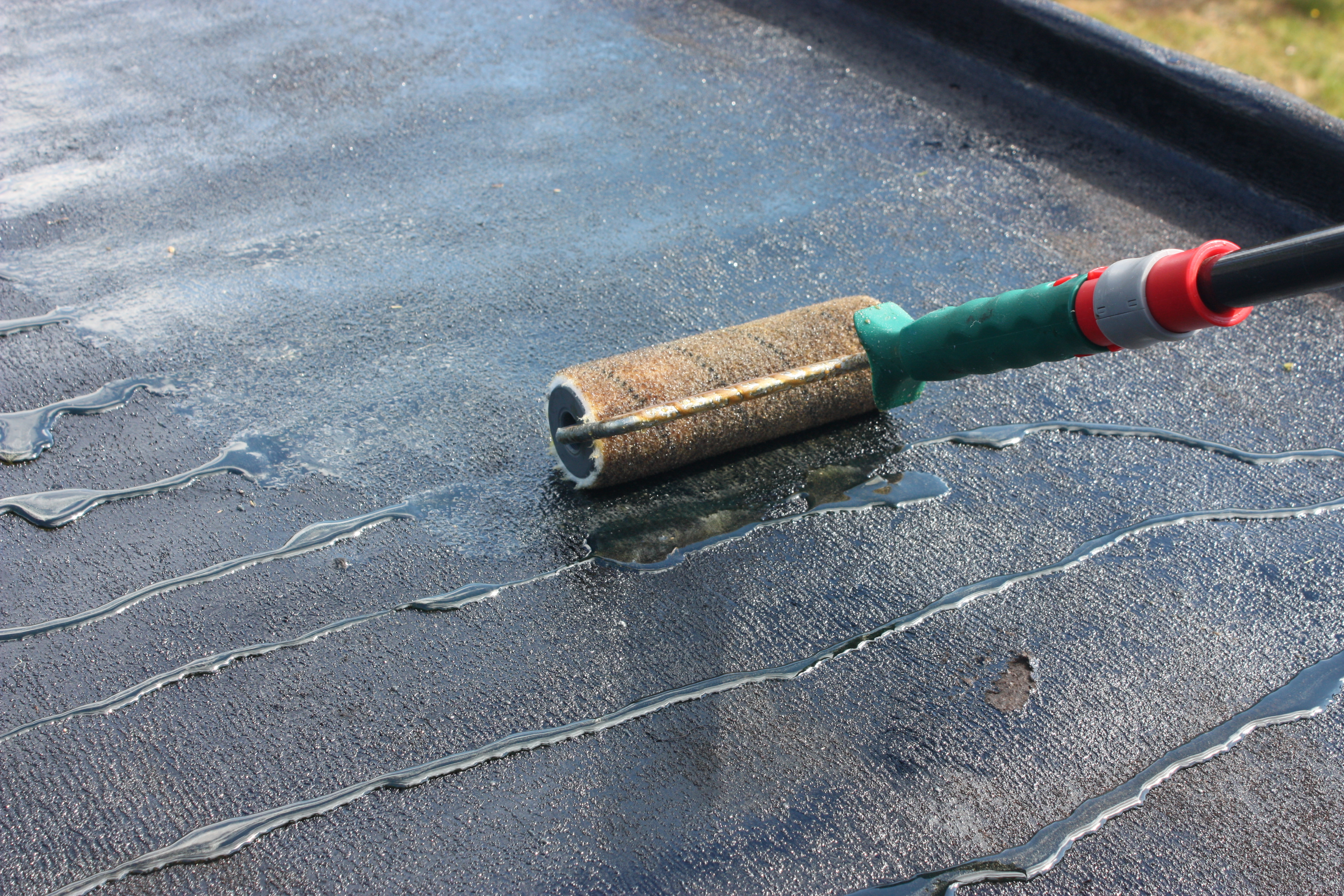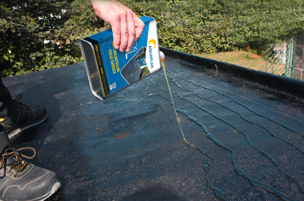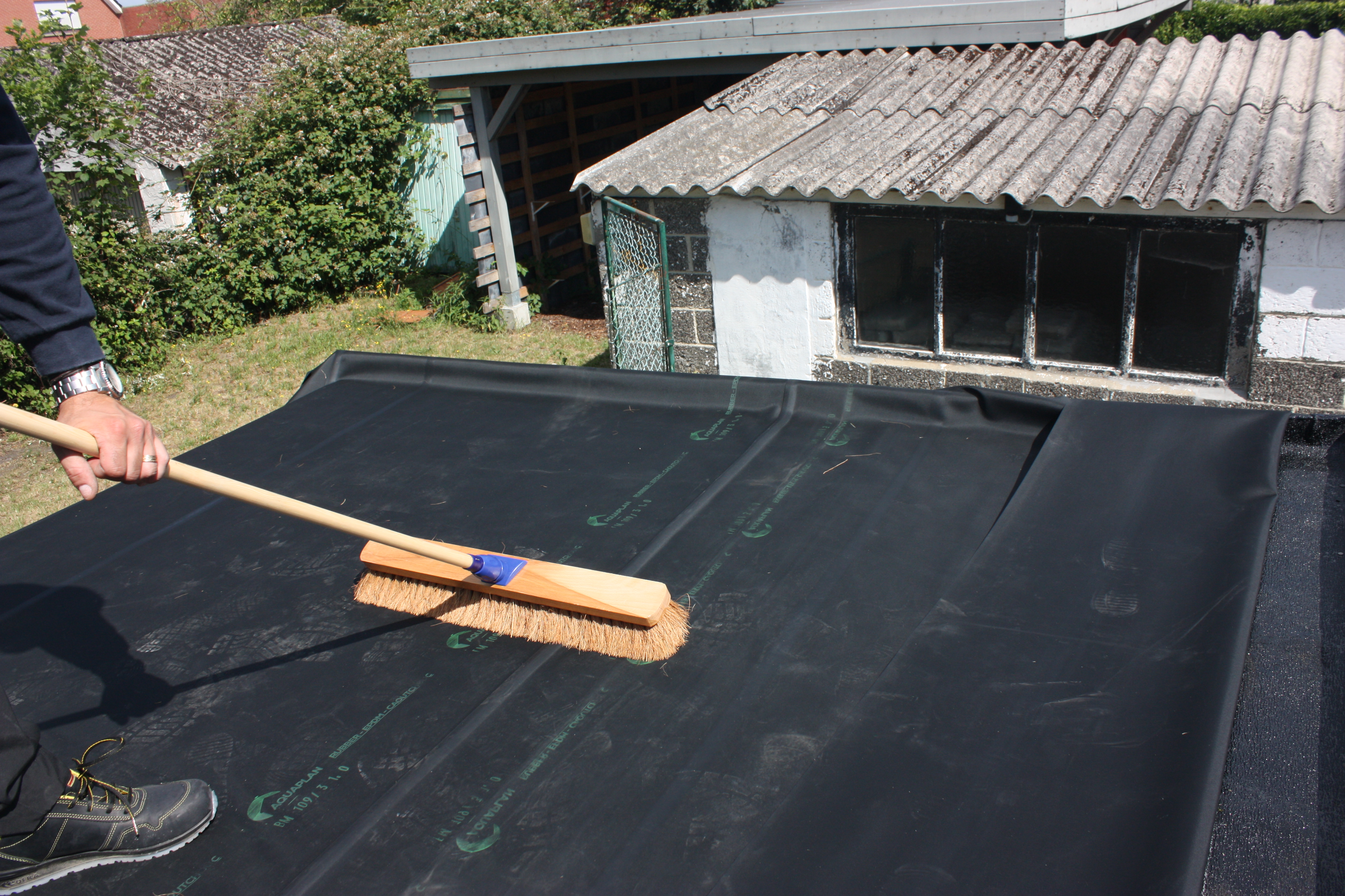 - Indien gewenst, kan je de lijm met een roller of vloerwisser uitsmeren. Het verbruik bedraagt dan 300 g/m². Bij een volledige verlijming moet minimaal 90 % van de FlexiFoil EPDM folie verkleefd zijn aan de ondergrond.