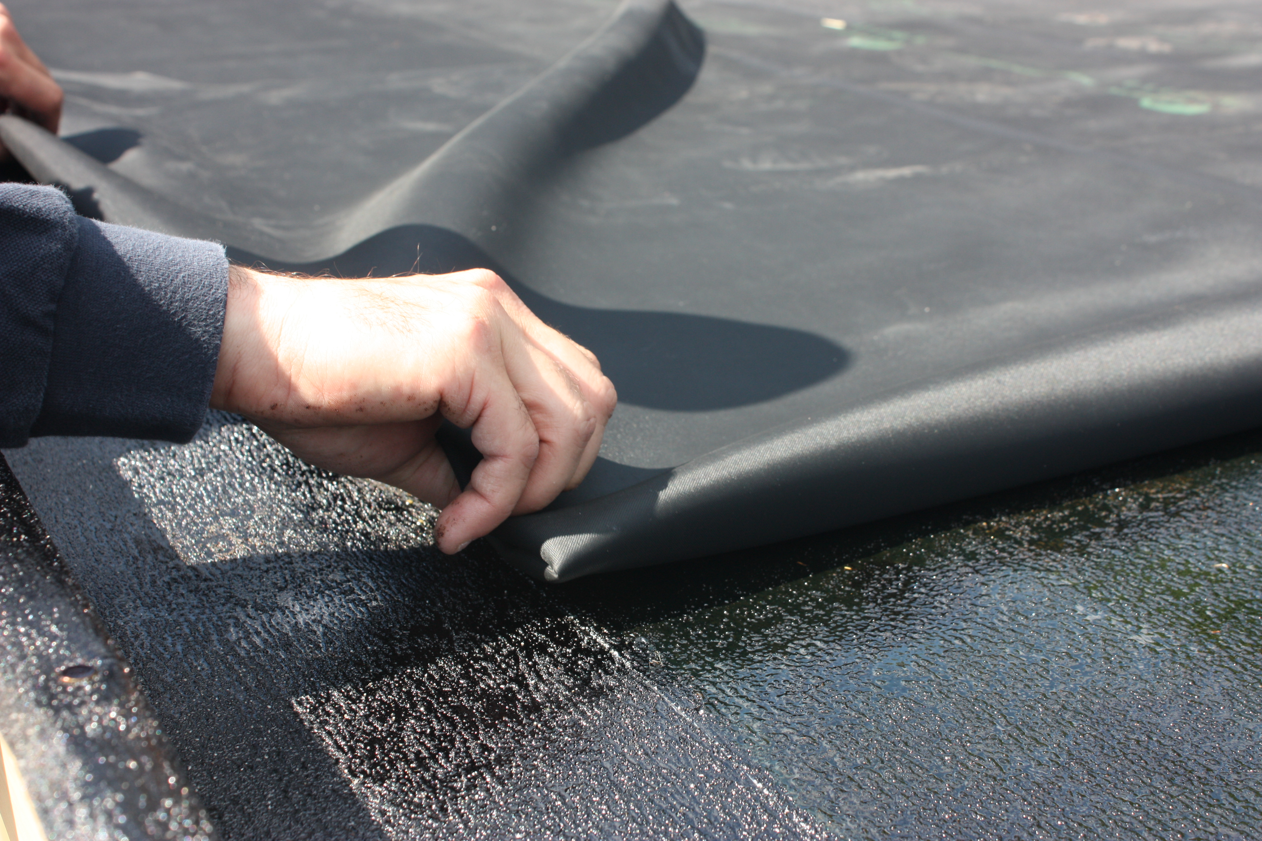 - Vouw nu de andere helft van de FlexiFoil EPDM terug en start de verlijming zoals hierboven aangegeven.