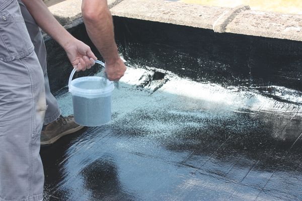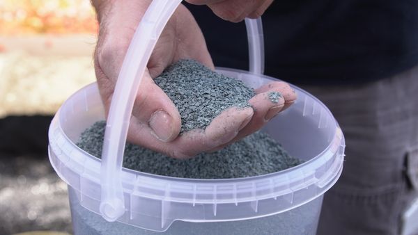 Een gemalen en gekleurde leislagsteen om oude en nieuwe dakbedekkingen te beschermen tegen UV-stralen. Deze leislag in de kleur grijsgroen is goed voor het bedekken van een dak van 2 m².