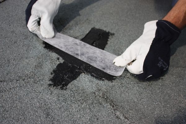 - Plaats de verstevigingsband direct na het aanbrengen van de eerste laag rubber afdichtingscoating, druk goed aan en bedek direct met een tweede laag.